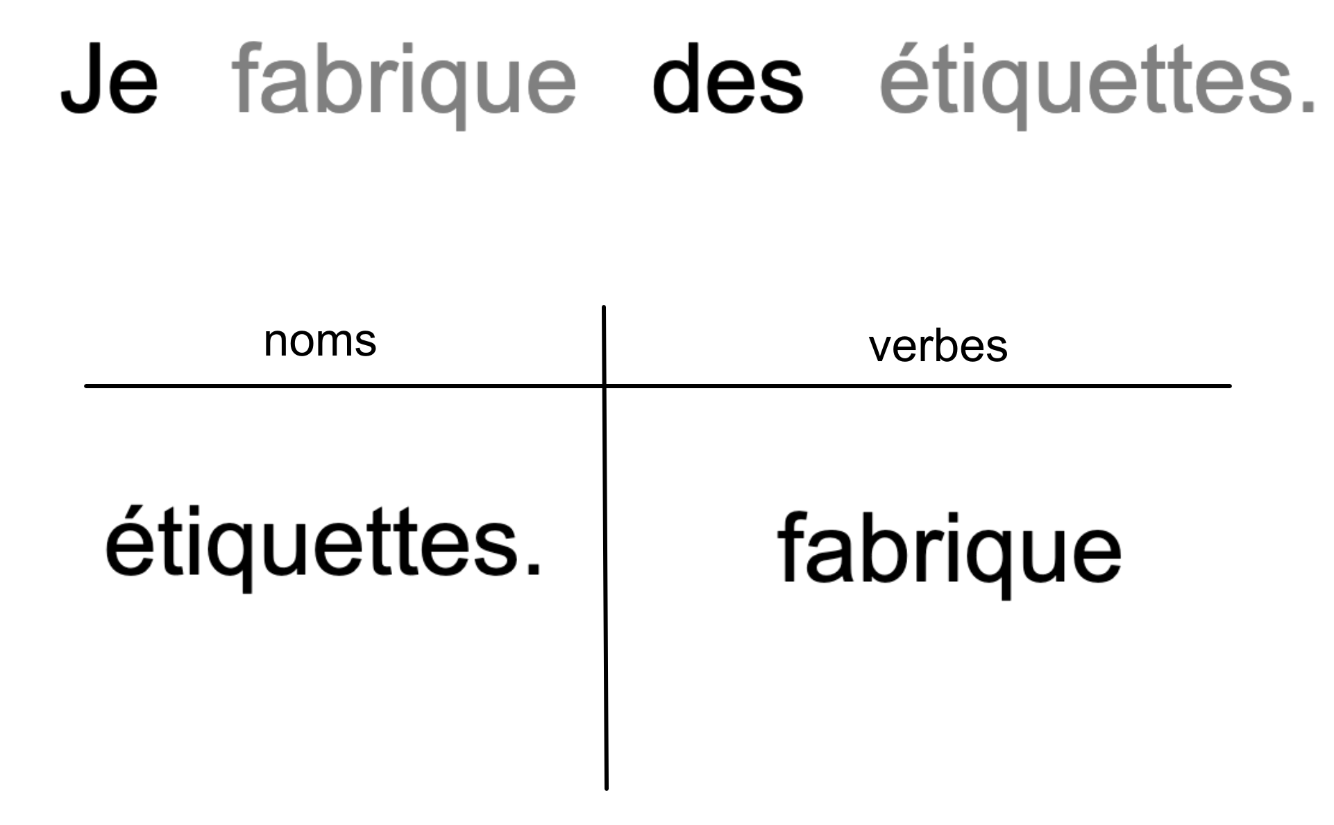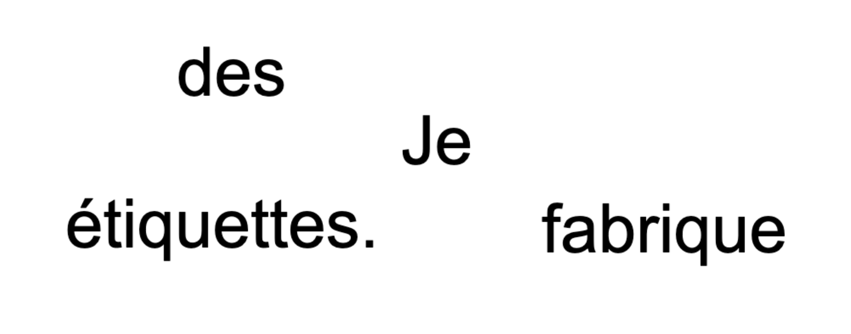 Les deux jeux d’étiquettes sont placés l’un sur l’autre, vous pouvez désormais manipuler les étiquettes noires tout en gardant une trace de la phrase initiale grâce aux étiquettes grises.