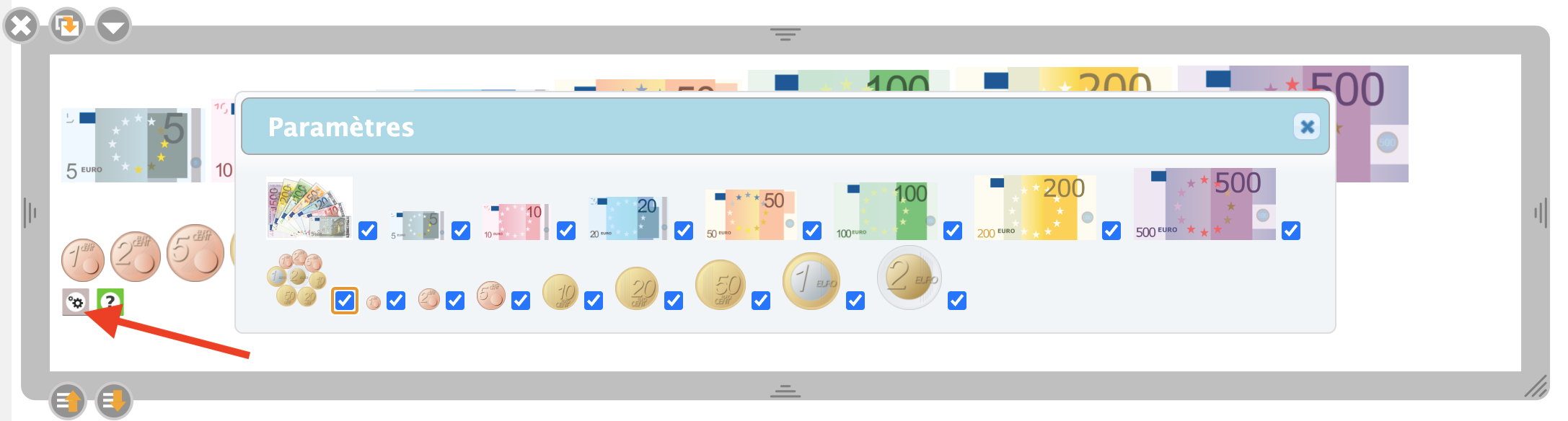 Euro : elle vous permet de mettre à disposition sur le paperboard des pièces et des billets qui sont disponibles indéfiniment (sans faire un copier/coller).