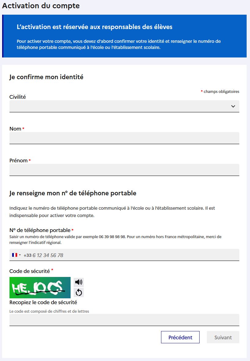 Saisissez votre numéro de mobile que vous avez communiqué à l’école et recopiez le code de