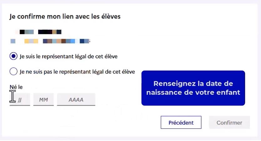 4 – Pour valider le rattachement de vos enfants, saisissez leurs dates de naissance et cliquez sur le bouton Continuer.