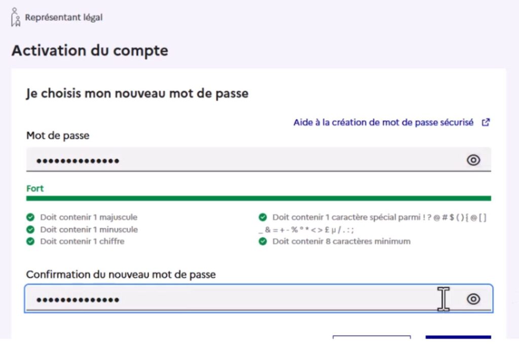 5 – Choisissez votre mot de passe en respectant les règles indiquées à l’écran. Notez soigneusement ce mot de passe, il vous sera demandé à votre prochaine connexion.