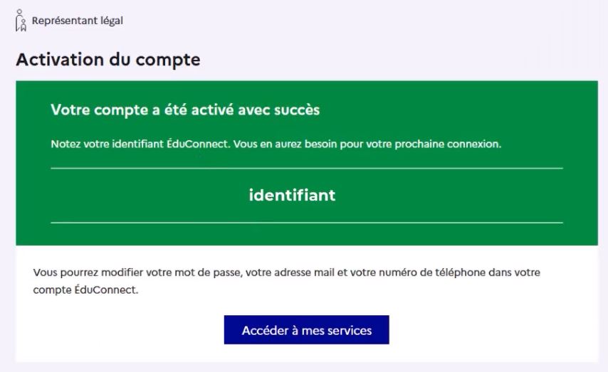 6 – Notez également l’identifiant de votre compte Educonnect qui vient de s’afficher à l’écran (il vous sera demandé à votre prochaine connexion).